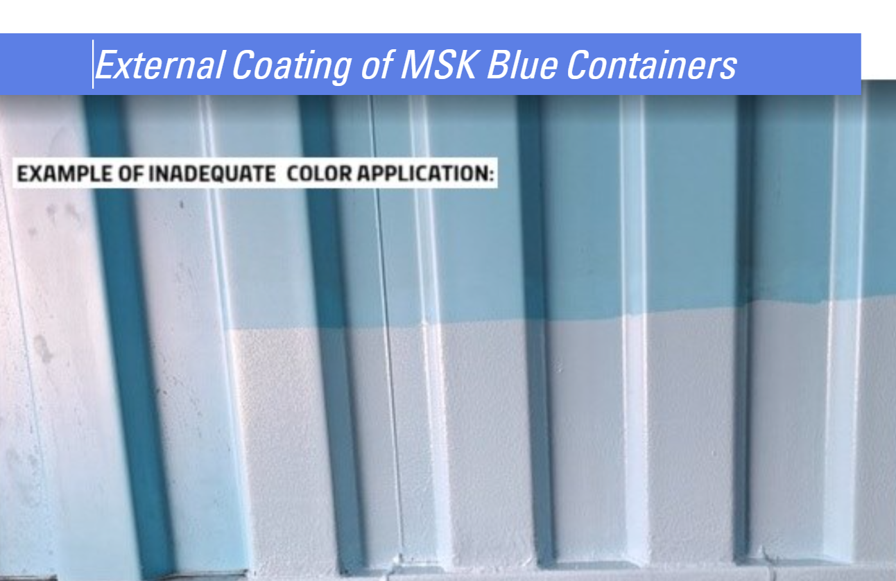 Please ensure the correct and adequate colour is applied during container repairs.This is critical in maintaining brand consistency and visual integrity across the fleet.